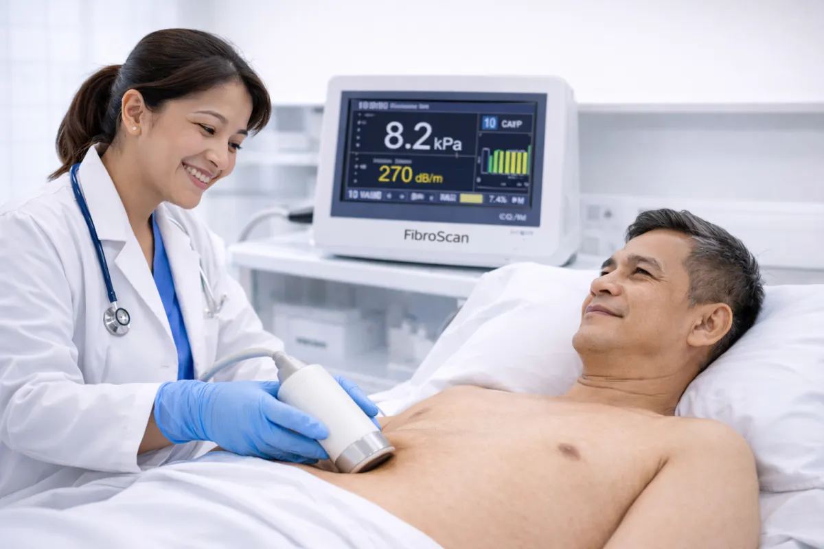 Non-invasive liver assessment that measures liver stiffness and fat levels to help detect fibrosis and fatty liver disease quickly and safely.